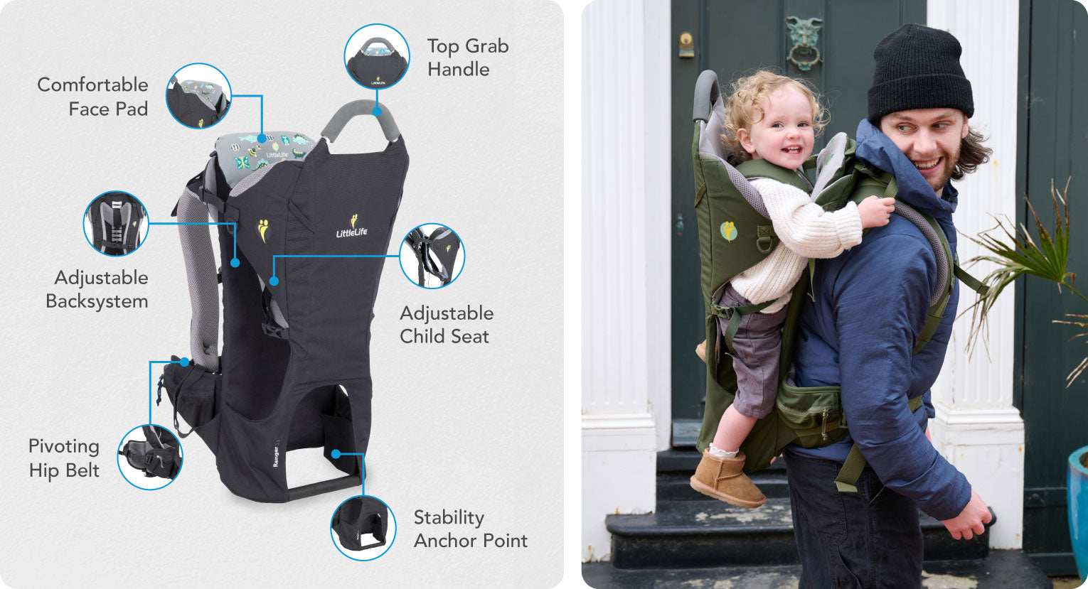 The Ranger Child Carrier is compatible with all LittleLife Child Carrier accessories to make your journeys together more comfortable, with add-ons such as: Rain Cover, Sun Shade, Foot Stirrups, Transporter Bag & Accessory Bag.